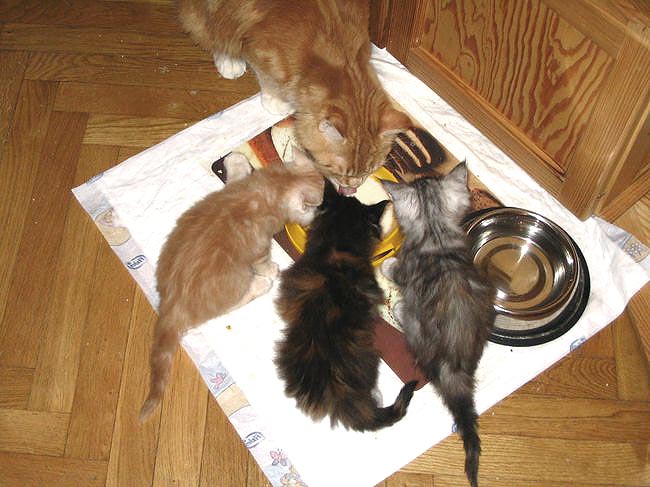 Te dzieciaki to małe piranie. Dlaczego piranie? Różnie bywa z jedzeniem różnych dań przez różne kociaki. Tylko Cibi rąbie wszystko, co stawiam w misce i to w takim tempie, jakbym głodziła go od tygodnia a jutro miałaby nastąpić klęska światowego głodu.