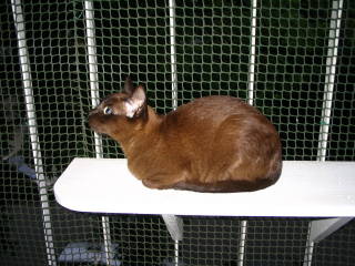 Próbowała spacyfikować gościa, kładąc się na podłodze, mrużąc oczy, przeciągając się - wykonując pełen asortyment przyjaznych gestów. Nic nie pomagało. Gość był nieprzejednany. By oszczędzić obydwojgu stresu zamknęłam kocicę w sypialni.